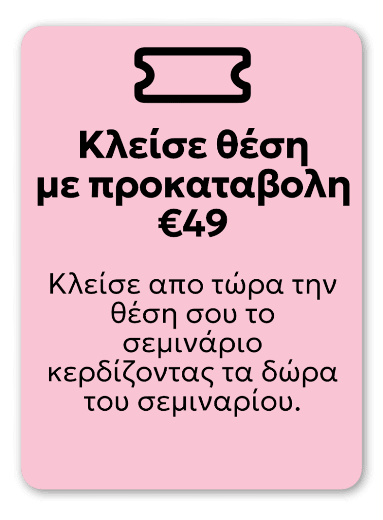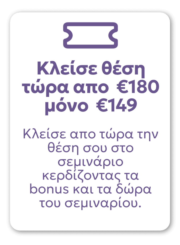 Κλείσε απο τώρα την θέση σου στο σεμινάριο κερδίζοντας τα bonus και τα δώρα του σεμιναρίου.